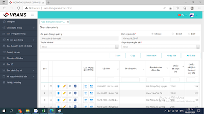 Cập nhật những thay đổi dữ liệu tài sản đường bộ về tình trạng và lịch sử sửa chữa đường, kiểm định và lịch sử bảo trì cầu vào phần mềm VRAMS và VBMS