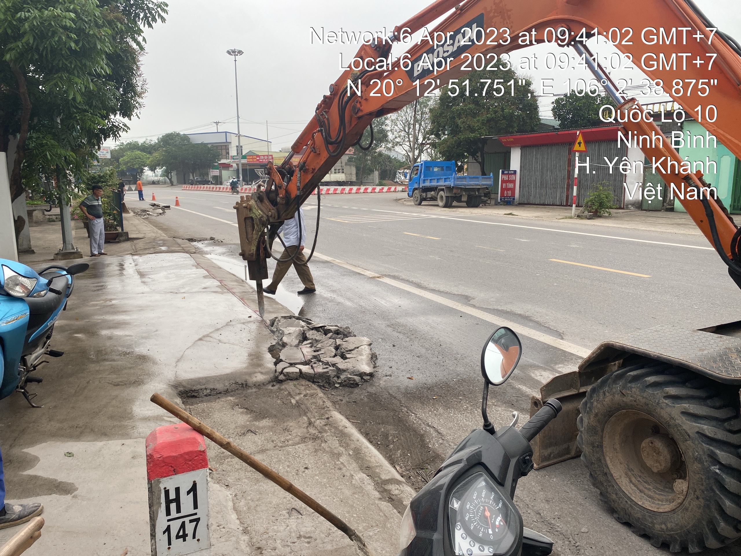 Văn phòng QLĐBI.7 phối hợp cùng UBND xã Khánh Cư và hạt 4 QL10 cưỡng chế giải toả các trường hợp vi phạm lấn chiếm mặt đường để đổ bê tông làm nối lên xuống từ Km147+00-Km147+300 (P) QL10